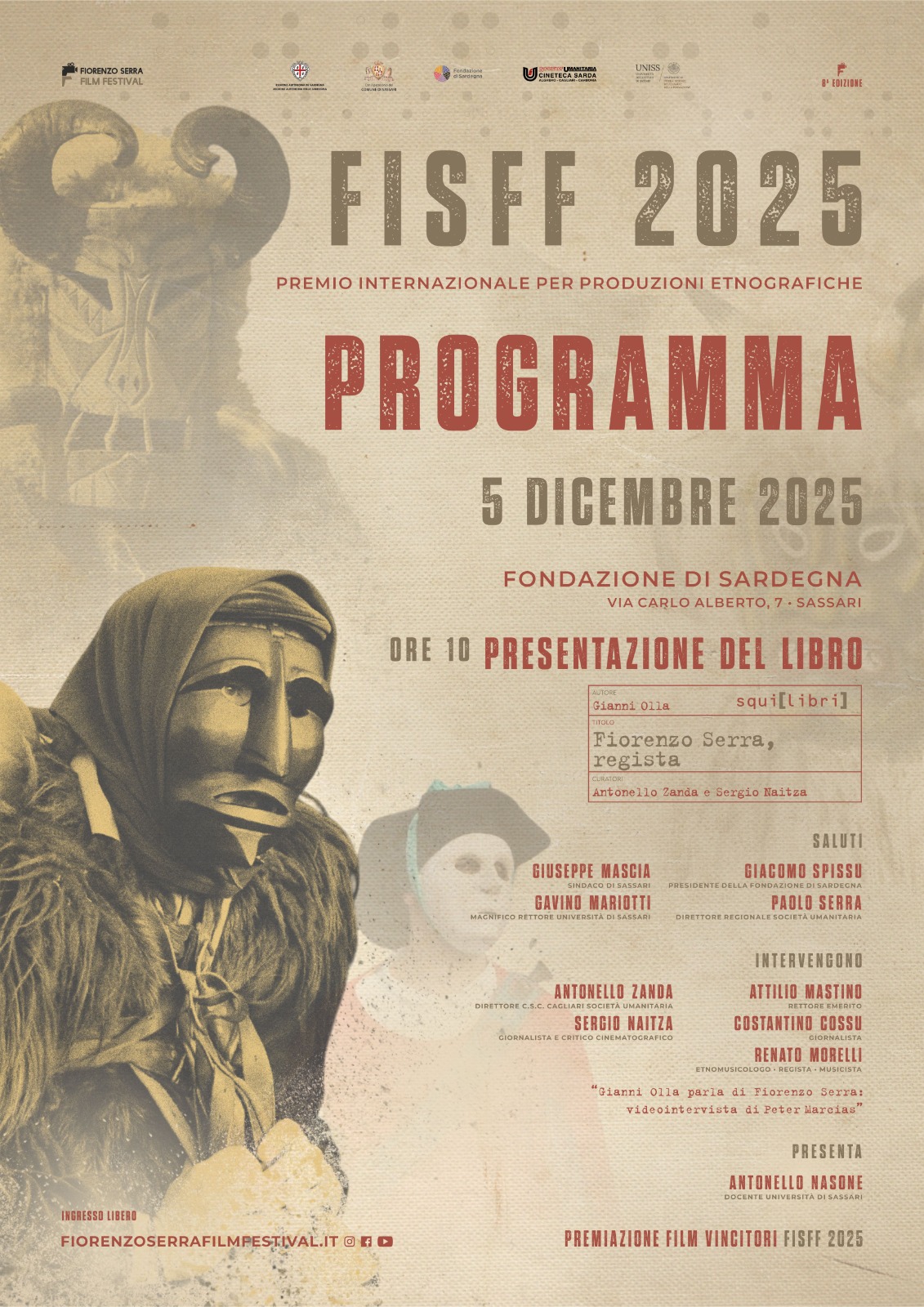 Si tiene a Sassari dal 3 al 5 dicembre l’ottava edizione del Fiorenzo Serra Film Festival, dedicato al cinema etnografico e organizzato dal Laboratorio di Antropologia Visuale “Fiorenzo Serra” di Sassari della Società Umanitaria - Cineteca Sarda. L’edizione 2025 è anche l’occasione per presentare in anteprima nazionale la nuova edizione del volume “Fiorenzo Serra, regista” di Gianni Olla, pubblicato originariamente nel 1996 e oggi riproposto da Squilibri in una versione rinnovata curata da Antonello Zanda e Sergio Naitza.